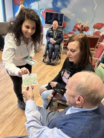 Foto (Christiane Wehnert): Simona Ippolito von der Stadtverwaltung überreichte die Postkarten an die Bewohnerinnen und Bewohner vom DRK-Seniorenzentrum