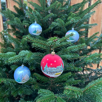 Pünktlich zur Weihnachtszeit gibt es wieder die beliebten Weihnachtskugeln mit Göppinger Motiven – ein einzigartiges Highlight für den Christbaum. Die Kugeln sind zehn Zentimeter groß,mundgeblasen,von Hand dekoriert und präsentieren fünf unverwechselbare Motive,die die Verbundenheit zur Stadt zum Ausdruck bringen.