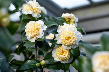 Foto (Wilhelma Stuttgart / Birger Meierjohann): Kamelienblüte in der Wilhelma
