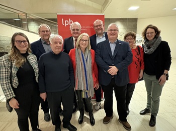 Eine Abordnung der Europa-Union im Landkreis Göppingen um deren Vorsitzenden Daniel Frey hat im Rahmen des Neujahrsempfangs der Europaverbände im Land die Flagge des Landkreises hochgehalten.