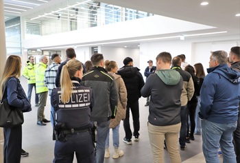 Foto (ALB FILS KLINIKUM): An drei Terminen wurden rund 40 Polizistinnen und Polizisten des Göppinger Polizeireviers durch den Neubau des ALB FILS KLINIKUMS geführt
