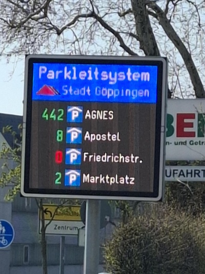 Eva Noller,Baubürgermeisterin der Stadt Göppingen nahm in Abwesenheit von Oberbürgermeister Alex Maier,das Verkehrsleitsystem in Betrieb: „Mit diesem modernen Parkleitsystem setzen wir auf eine intelligente Verkehrssteuerung,die nicht nur die Parkplatzsuche erleichtert,sondern auch zur Reduzierung von Emissionen und Staus beiträgt. Dies ist ein bedeutender Schritt für die Zukunft der Mobilität in Göppingen“.