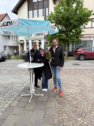 Am Donnerstag vor dem Muttertag war es wieder soweit. Die CDU im Raum Bad Boll beschenkte,am Rande des Bauernmarktes,jede Frau eine rote Rose. Wir sagen Danke an alle Mütter für die herausragende Arbeit für unsere Gesellschaft.