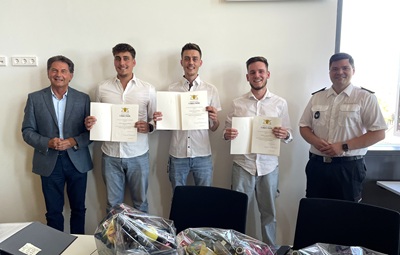 Christoph Seifried,Marvin Seifried und Julian Schurr erhalten öffentliche Anerkennung für ihre Zivilcourage beim Hochwasser im letzten Jahr.