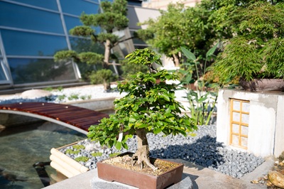Die Wilhelma ist um eine neue botanische Attraktion reicher: Einen im japanischen Stil gestalteten Bonsai-Garten. Er befindet sich inmitten einer mit Seerosen bepflanzten Teichlandschaft,die von mehreren Koi-Karpfen bewohnt ist. Die Bonsai- Sammlung in der Wilhelma geht auf verschiedene Schenkungen zurück. Bisher wurden in den Gewächshäusern des Zoologisch-Botanischen Gartens meist nur einzelne Exemplare gezeigt. Von nun an können die Besucherinnen und Besucher in der neuen Japanlandschaft die schönsten Exemplare nach der alljährlichen Überwinterung und einem fachgerechten Schnitt bewundern.
