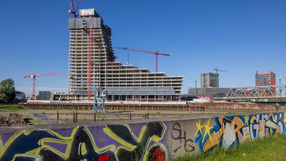 Elbtower-Baugerippe am Rande der Hamburger HafenCity: Erste Alarmwert-Hinweise schon im Januar 2024