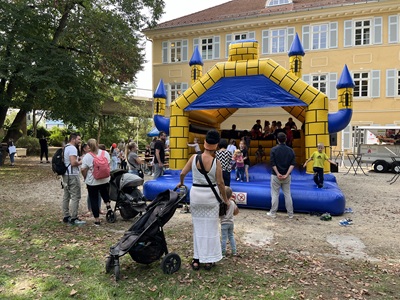 Foto (Bildquelle: Stadt Eislingen): Viele verschiedene Aktionen laden die Kinder beim Weltkindertagsfest ein,mutig zu sein und Neues auszuprobieren. Die Hüpfburg,als bewährtes Highlight wird dieses Jahr wieder aufgebaut