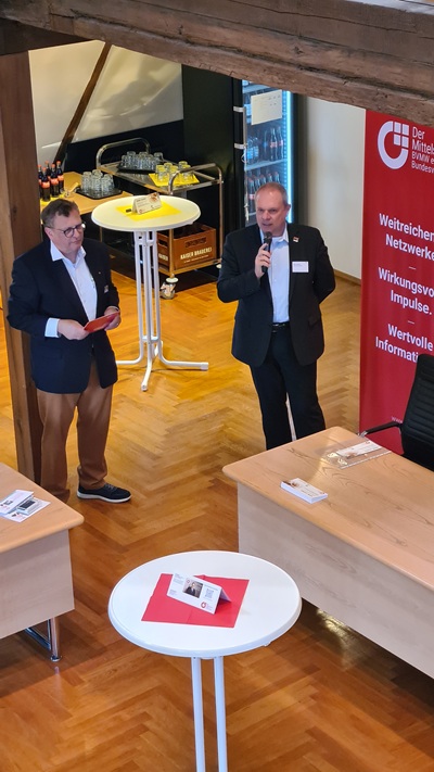 Lothar Lehner,Repräsentant des BVMW e. V. in der Region,zeigte sich hocherfreut über die herausragende Resonanz und die produktive Atmosphäre des Treffens. „Die hohe Teilnehmerzahl von 70 Akteuren zeigt eindrucksvoll,wie groß der Bedarf an Vernetzung und Information über die wirtschaftliche Zukunft unserer Region ist“,so Lehner. Als weiteren Beleg für die wachsende Attraktivität des BVMW-Netzwerks konnte er bei dieser Veranstaltung zwei neue Mitglieder im Kreis der Unternehmer herzlich begrüßen.