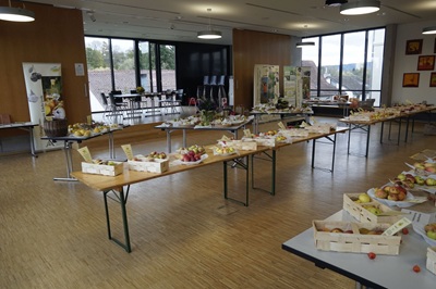 Ein besonderes Highlight in der Feierreihe anlässlich der 750-jährigen Jubiläen der Gemeinden Albershausen,Schlierbach samt Ortsteilen von Ebersbach an der Fils,Roßwälden und Sulpach war die Sortenausstellung mit Sortenbestimmung in der Mensa der Grundschule Albershausen. Pünktlich um 14 Uhr eröffneten Bürgermeister Herr Jochen Bidlingmaier und Frau Tanja Schweizer (Vorsitzende des Kreisverbandes der Obst- und Gartenbauvereine Göppingen e. V.) die Veranstaltung,die in Zusammenarbeit mit den sechs Obst- und Gartenbauvereinen des Unteren Filstals organisiert wurde.