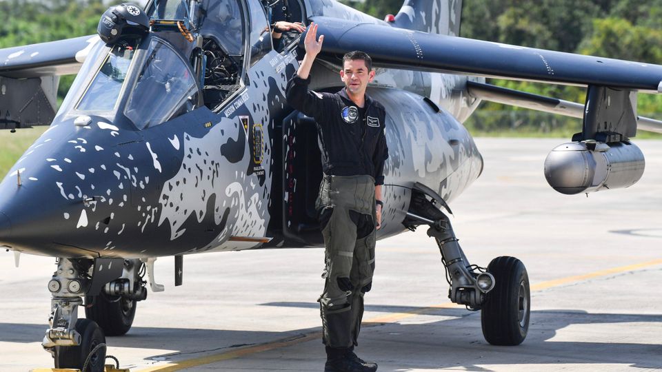 Isaacman,Pilotenspitzname »Rook«,mit Militärjet seiner Firma Draken: Wohl größte private Kampfflugzeugflotte der Welt