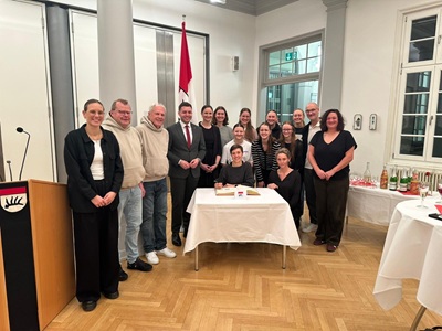 Der Erste Bürgermeister hob hervor,dass aus diesem starken Kollektiv auch beeindruckende Persönlichkeiten wachsen. So wurden Pauline Borrmann als Topscorerin und Tina Orlamünder als wertvollste Spielerin des Turniers besonders gewürdigt. Besonderes Augenmerk legte Heberle auf die lokale Verankerung des Erfolgs. Der Schritt des ursprünglich in Erlangen gegründeten Teams zum TSV Bartenbach habe sich als „goldrichtig“ erwiesen. Beachhandball sei dort längst kein bloßer Sommertrend mehr,sondern ein Erfolgsmodell mit Vorbildcharakter für die Jugendarbeit und die ganze Region. „Ihr zeigt,wie moderner Sport funktioniert: leistungsorientiert,gemeinschaftlich und leidenschaftlich“,so Heberle. Im Anschluss an die Rede trugen sich die Meisterinnen unter dem Applaus der Anwesenden in das Goldene Buch der Stadt Göppingen ein.