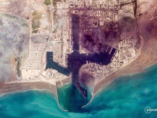 Brennende Hafenanlage in Bandar Abbas,Iran,an der Straße von Hormus