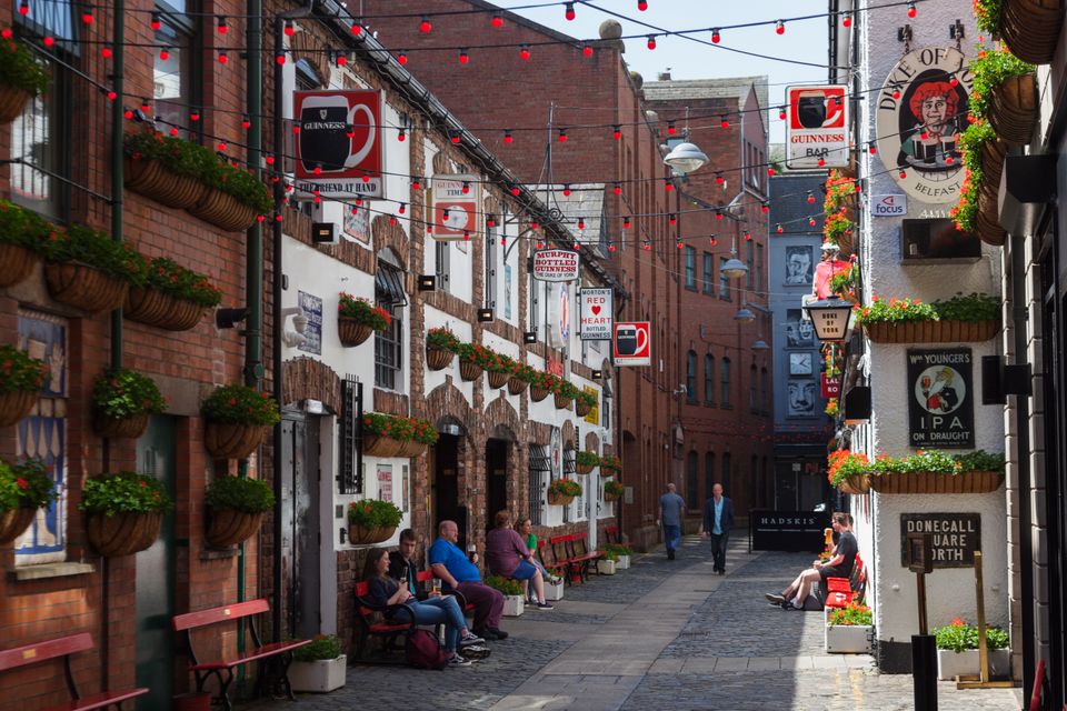 Straße in Belfast mit Pub (Symbolbild): Für eine Alkohollizenz wurde Lidl kreativ
