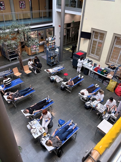 Seite an Seite liegen sie da: Mitarbeiterinnen und Mitarbeiter der Stadtverwaltung Göppingen und lassen sich den so wichtigen Lebenssaft abzapfen. „Ich freue mich sehr,dass so viele unserer Kolleginnen und Kollegen dem Aufruf gefolgt sind und heute Blut spenden“,sagte Oberbürgermeister Alex Maier.