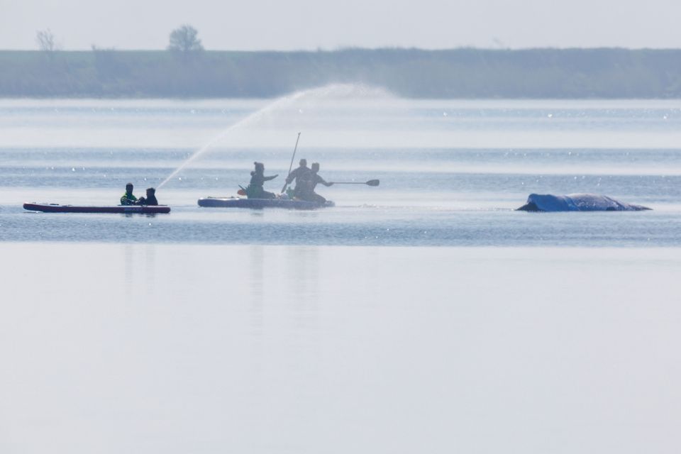 Retter spritzen Wasser auf den Wal