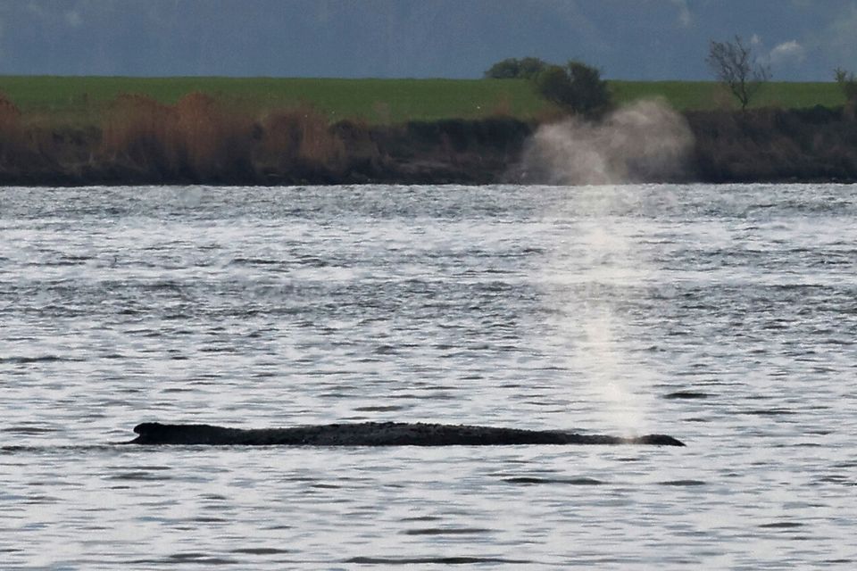 Am Freitagmorgen hatte das Tier mit heftigen Bewegungen auf einen sich nähernden Taucher reagiert. Es schlug mit der Schwanzflosse und drehte sich um beinahe 90 Grad,wie in Livestreams zu sehen war. Nach wenigen Minuten beruhigte sich der Wal und lag wieder still im Wasser.