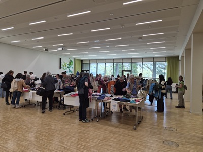 Schon vor 11 Uhr standen die ersten Besucherinnen und Besucher vor dem Eingang Schlange,und auch im weiteren Verlauf des Tages herrschte großer Andrang beim Tauschen und Stöbern. Zahlreiche gut erhaltene Kleidungsstücke wurden abgegeben und fanden schnell neue Besitzerinnen und Besitzer. Auch ohne mitgebrachte Kleidung nutzten viele die Gelegenheit,sich umzusehen und neue Lieblingsstücke zu entdecken. Im Laufe des Tages wurde fleißig getauscht,anprobiert und entdeckt. Unterstützt wurde der AWB von Auszubildenden der AOK,die beim Einsortieren der Kleidungsstücke mithalfen und so zu einem reibungslosen Ablauf beitrugen.