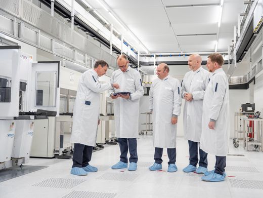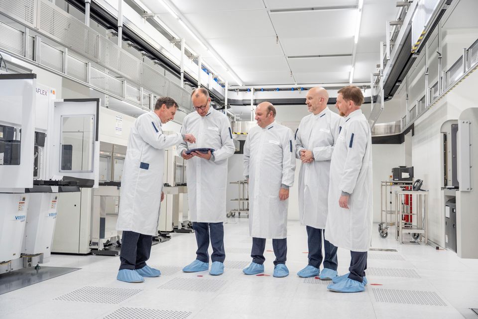 Kanzler Friedrich Merz (2. v.l.) in Chipfabrik in Dresden: Fünf Milliarden jährlich für die Halbleiter