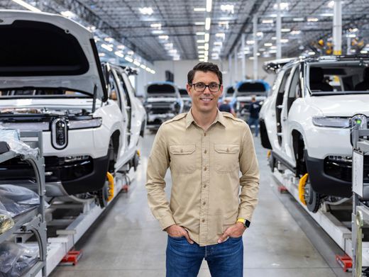 Rivian-Gründer und CEO RJ Scaringe in der Fabrik in Kalifornien: Geht die Wette für VW auf?