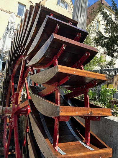 Am 21. April 2026 wurde das Mühlenrad schließlich wieder an seinen ursprünglichen Standort zurückgebracht. Erneut kam dabei der Autokran der Firma Gansloser zum Einsatz. Mit viel technischem Geschick und sorgfältiger Abstimmung im Team führten die Mitarbeitenden des Bauhofs die Einsetzung und anschließende Inbetriebnahme erfolgreich durch.